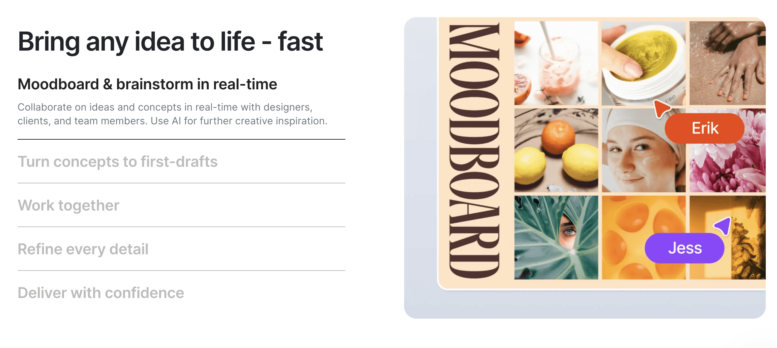 When I’m brainstorming packaging layouts, poster series, or merch concepts, I go to Kittl first. It lets me explore layouts rapidly and export vector assets without friction. It’s also helpful for client presentations when I need polished visuals fast.